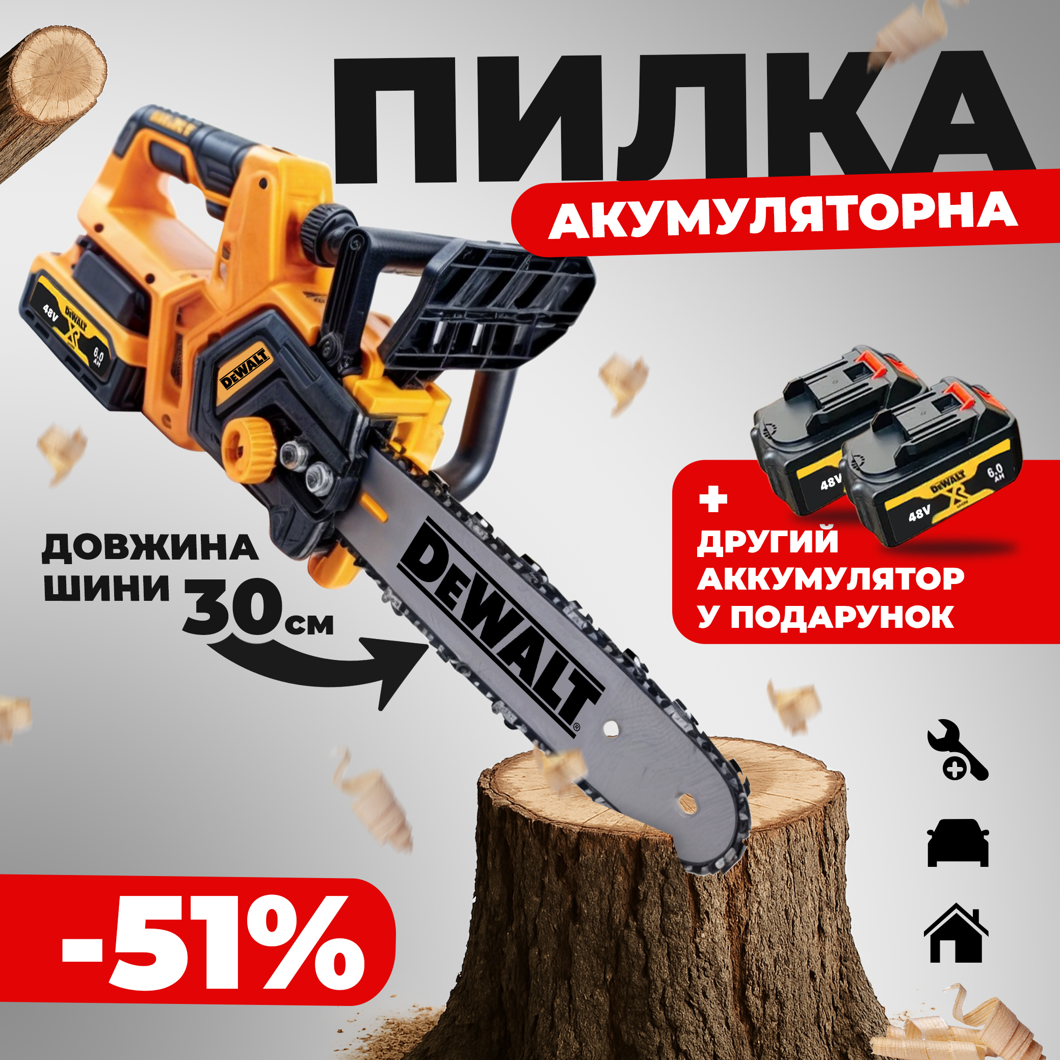 DeWalt— це професійне рішення для догляду за садом, будівництва та заготівлі дров. Завдяки бездротовій конструкції, пилка забезпечує максимальну маневреність без прив'язки до розетки та потреби у бензині.