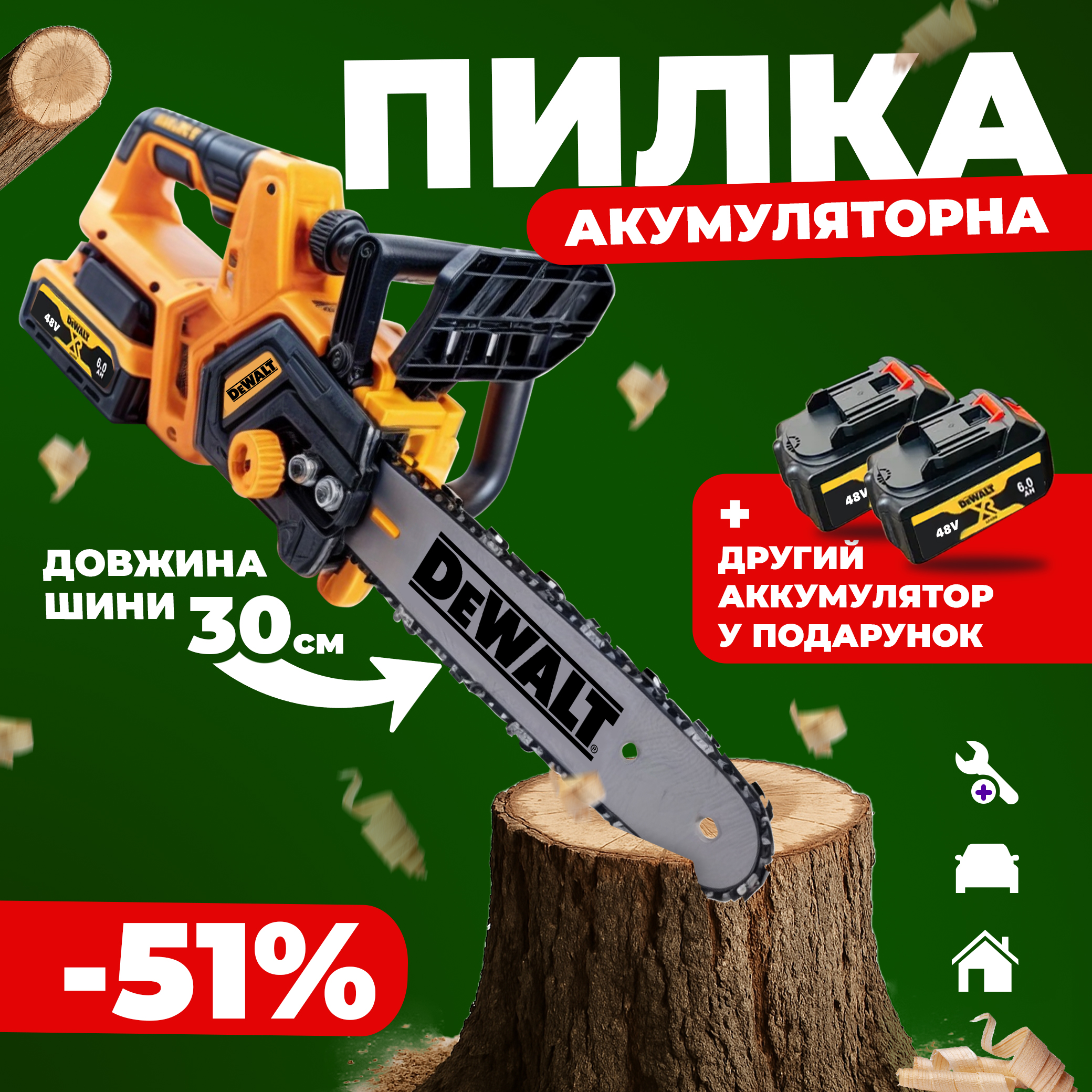 - Довжина шини: 30 см